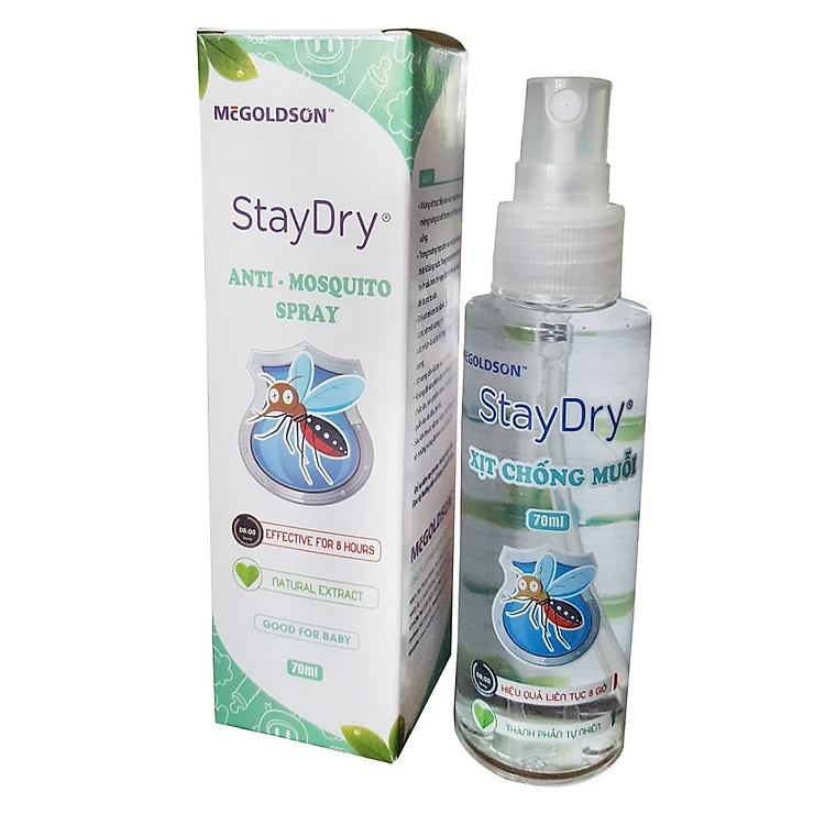• Chai xịt chống muỗi và côn trùng StayDry là sản phẩm để xịt phòng chống muỗi cho bé, dùng để xịt lên người hoặc phòng của bé để phòng chống muỗi và côn trùng.