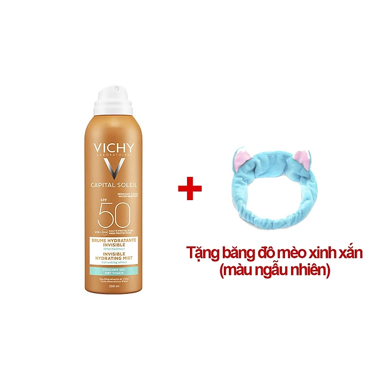 Xịt Chống Nắng Toàn Thân Lâu Trôi Vichy Capital Soleil SPF50+ 200ml (Tặng băng đô mèo xinh xắn)