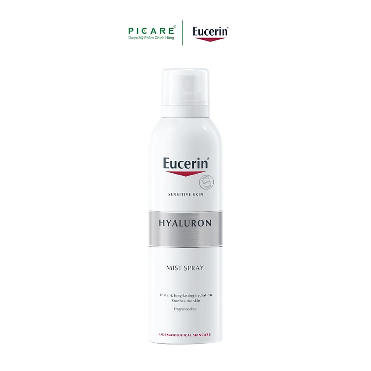 Xịt Dưỡng Ẩm Eucerin Cho Da Nhạy Cảm Hyaluron Mist Spray là xịt dưỡng ẩm đến từ thương hiệu mỹ phẩm Eucerin của Đức, công thức chứa Gluco Glycerol và Hyaluronic Acid giúp dưỡng ẩm da, trữ nước sâu vào đều trong tế bào da, tăng độ ẩm lên 126% và cung cấp các chất dinh dưỡng, khoáng chất và hydrat hóa cho làn da tươi sáng và rạng rỡ. - Picare là nhà phân phối chính hãng Eucerin tại Việt Nam.