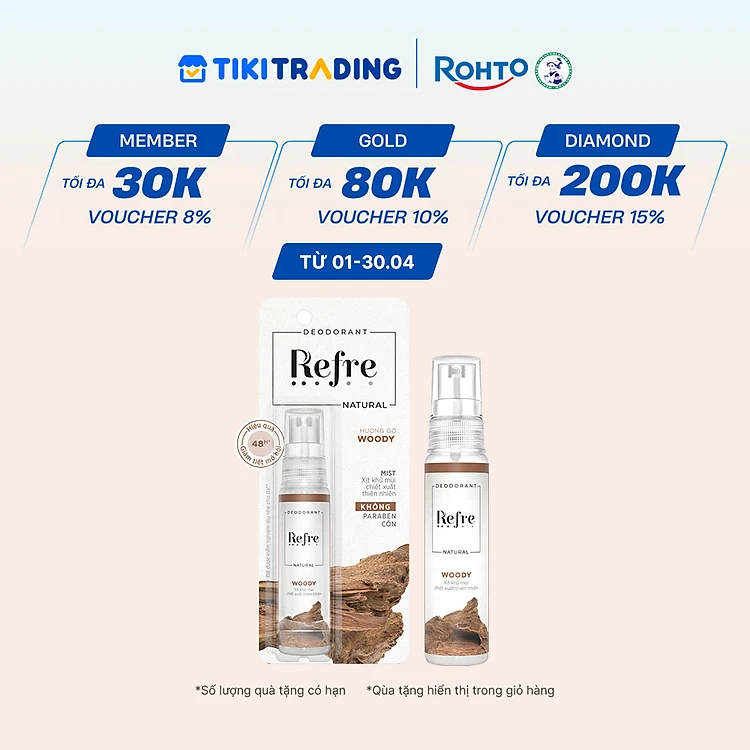 Xịt khử mùi chiết xuất thiên nhiên Refre Natural Woody Hương Gỗ 30ml