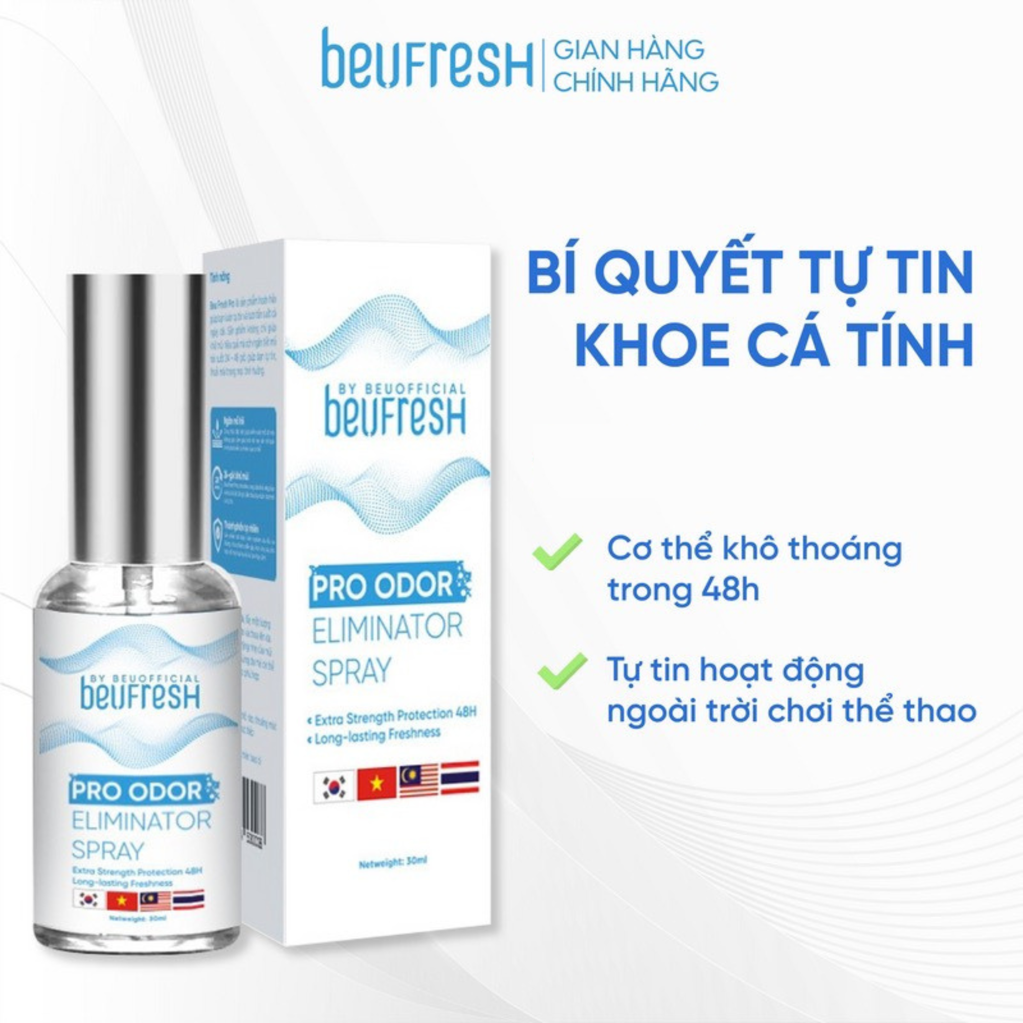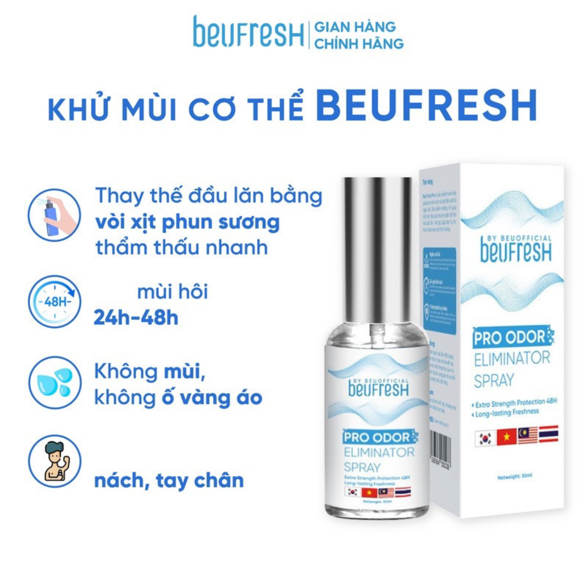 Xịt Khử Mùi Hôi Nách Beufresh 30ml, Khử Mùi Toàn Thân, Ngăn Tiết Mồ Hôi, Lưu Hương Suốt 24H, Quyên Lara