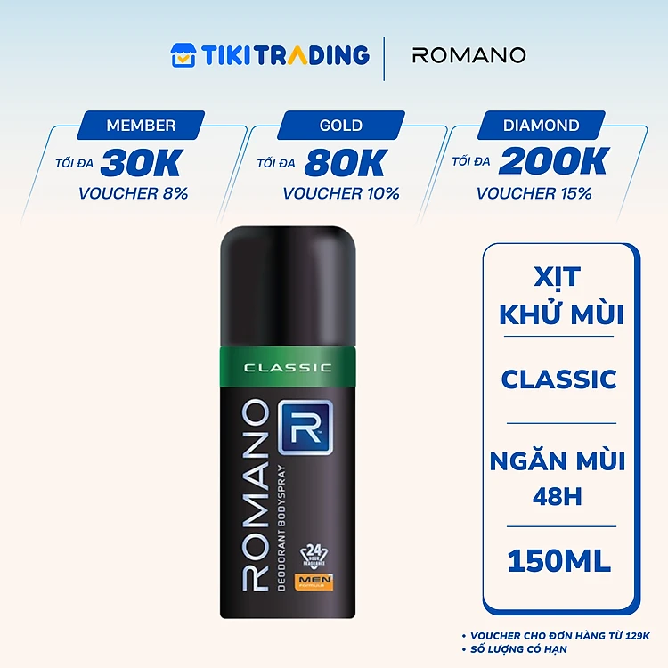 Xịt Khử Mùi Toàn Thân Cho Nam Romano Classic (150ml)