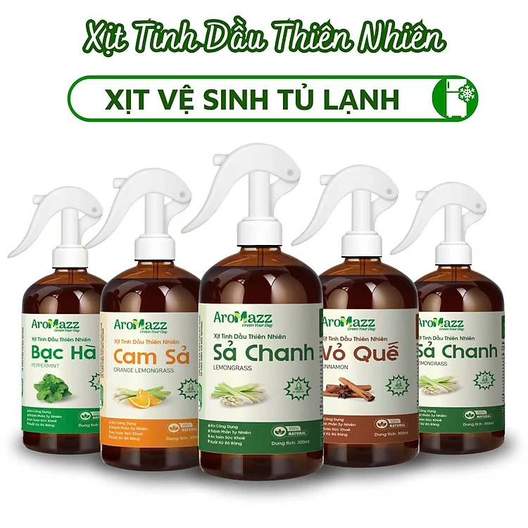 Xịt Khử Mùi Tủ Lạnh Từ Tinh Dầu Thiên Nhiên Khử Mùi An Toàn Có Nhiều Mùi Sả Chanh, Cam Sả, Bạc Hà, Vỏ Quế Chai Lớn 300ml