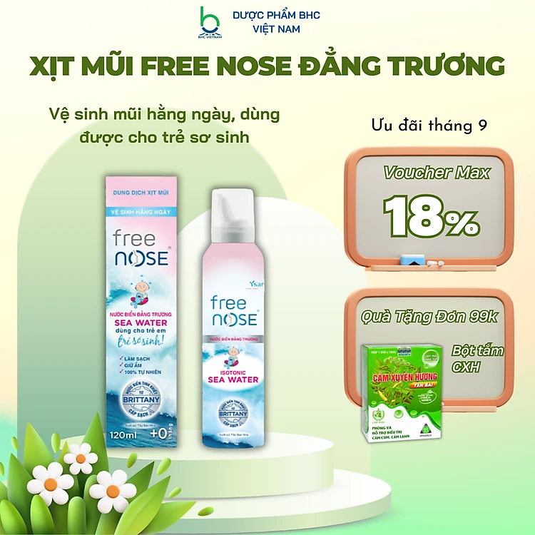 Xịt Mũi Free Nose Đẳng Trương Vệ Sinh Mũi Hằng Ngày Dành Cho Trẻ Sơ Sinh - Chai 120ml