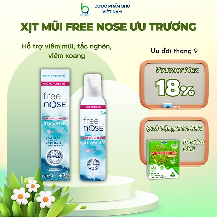 Xịt Mũi Free Nose Ưu Trương Hỗ Trợ Giảm Nghẹt Mũi, Chảy Nước Mũi Dành cho bé từ 3 tháng - Chai 120ml