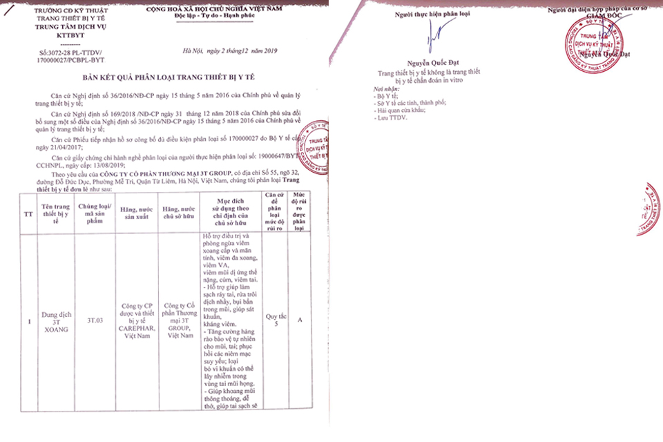Thành phần và công thức đặc biệt của 3T Xoang đạt chuẩn chất lượng Vật tư y tế loại A