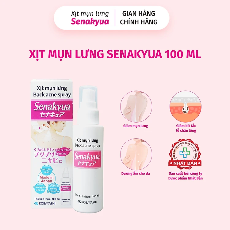 Xịt mụn lưng Senakyua Kobayashi Nhật Bản 100ml- Giảm mụn, thâm, dưỡng ẩm cho lưng, body