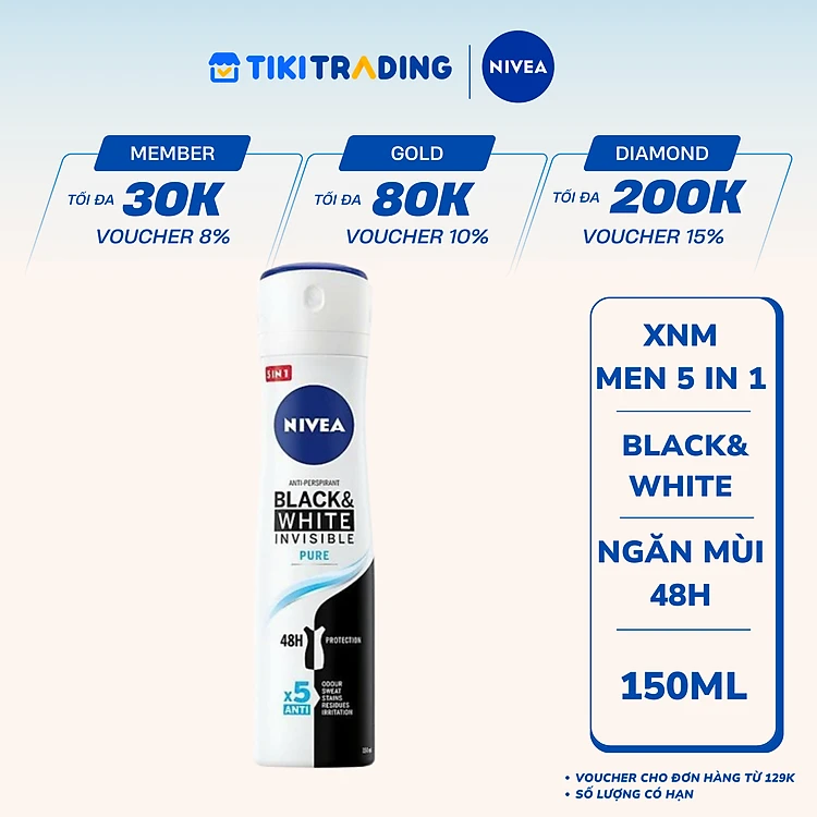 Xịt Ngăn Mùi NIVEA Black & White Ngăn Vệt Ố Vàng Vượt Trội 5in1 (150ml) - 82230