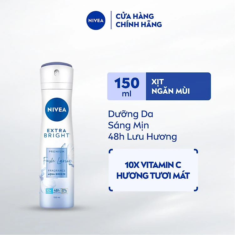 XỊT NGĂN MÙI NIVEA DƯỠNG SÁNG HƯƠNG NƯỚC HOA TƯƠI MÁT 150ML