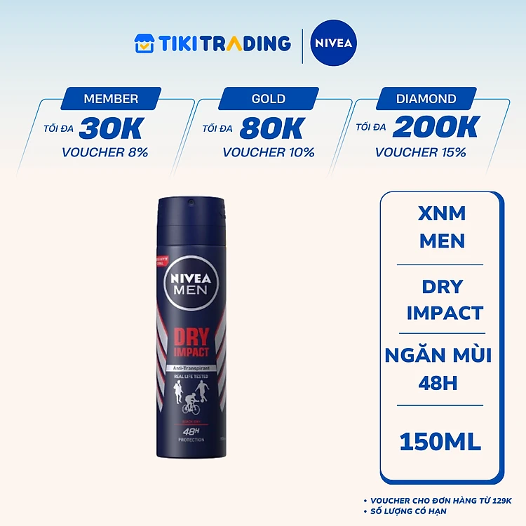 Xịt Ngăn Mùi NIVEA MEN Dry Impact Khô Thoáng 150ml - 81602
