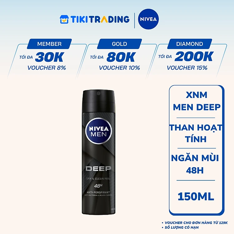 Xịt Ngăn Mùi NIVEA MEN Deep Than Đen Hoạt Tính (150 ml) - 80027
