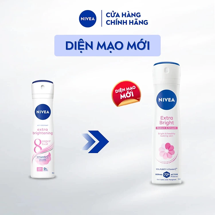 Xịt Ngăn Mùi NIVEA Sáng Mịn Tối Ưu | Giảm Thâm Sạm | Vitamin C (150 ml) - 82967