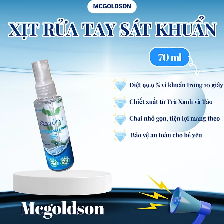 Xịt rửa tay sát khuẩn StayDry 70ml ( Hương Trà Xanh)