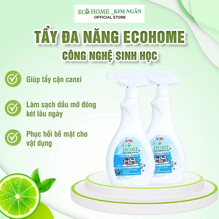 Xịt Tẩy Đa Năng Công Nghệ Sinh Học ECOHOME 500ML Tẩy Cặn Canxi, Tẩy Kính, Vòi Sen, Bồn Sứ, Chậu Tắm, Gạch Men, Gương Soi