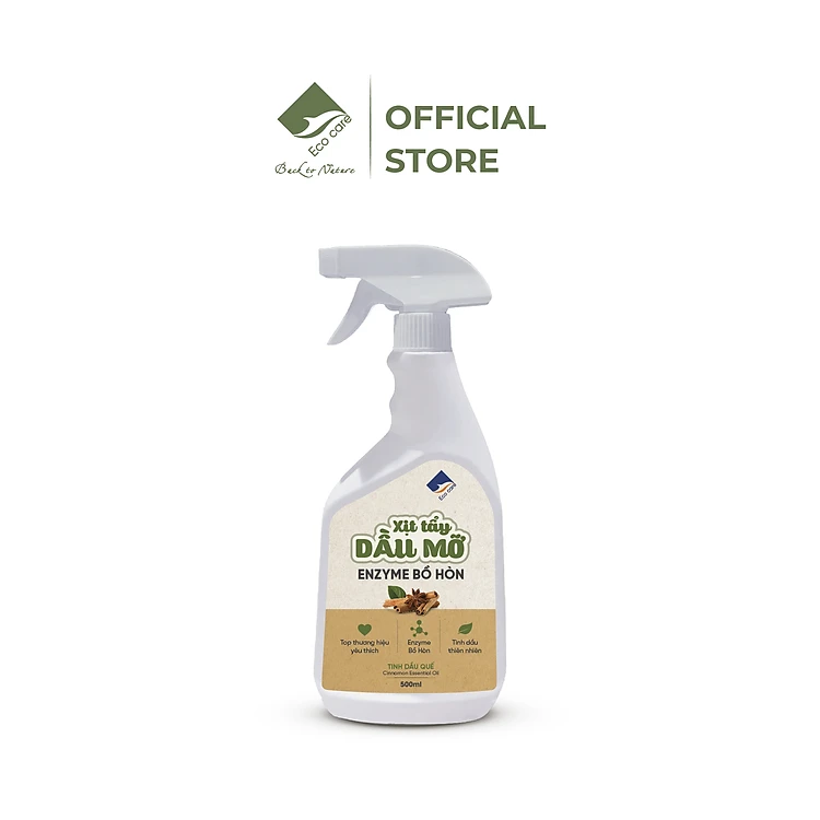 Xịt tẩy dầu mỡ Enzyme bồ hòn ECOCARE 500ml tinh dầu Quế/Cam Sả kháng khuẩn, làm sạch thiết bị nhà bếp.