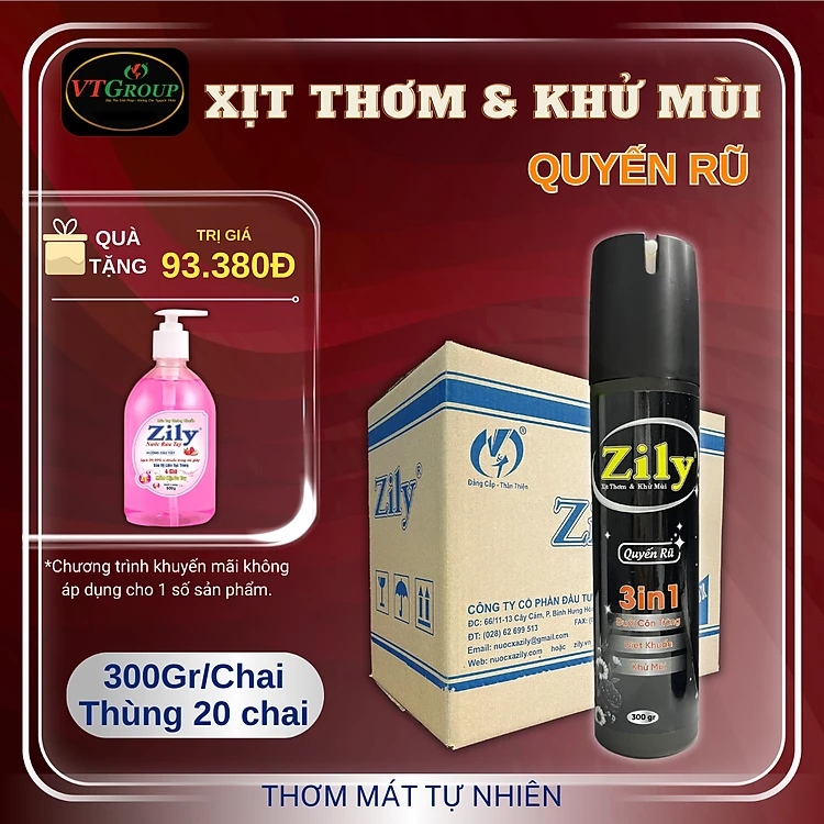Xịt Thơm & Khử Mùi Zily 300g (20 Chai/Thùng) - Tặng 1 Chai Nước Rửa Tay Zily 500Gr