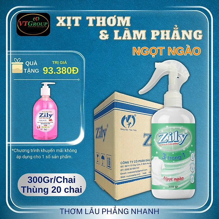 Xịt Thơm & Làm Phẳng Quần Áo Zily 300g ( 20 Chai/Thùng ) - Tặng 1 Chai Nước Rửa Tay Zily 500Gr