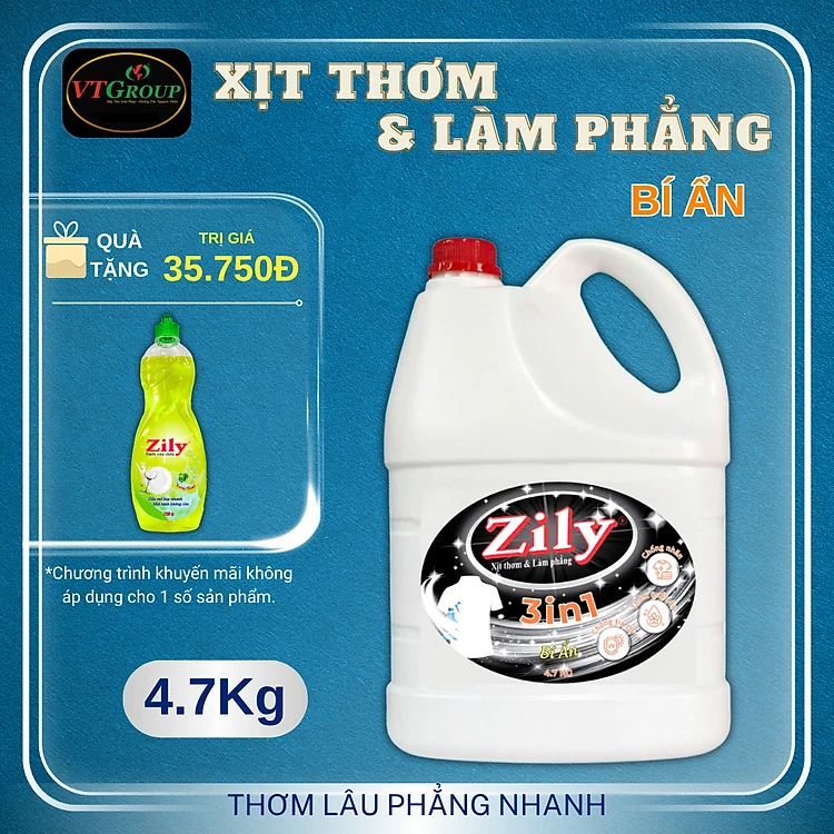 Xịt Thơm & Làm Phẳng Quần Áo Zily 4.7 Kg - Tặng 1 Chai Nước Rửa Chén Zily 750 gr