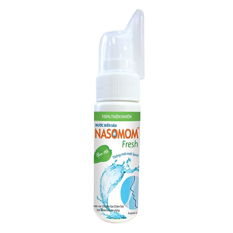 - Xịt Thông Mũi Nasomom Bạc Hà (70ml) - Hơn 30 năm qua, Nước biển sâu dạng xịt (NASOMOM ® Gentle Mist Spray) đã được khuyến cáo sử dụng bởi hầu hết các Bác sĩ và Dược sĩ. Sản phẩm đã giành đưc sự tin tưởng của các chuyên gia về sức khỏe trên thế giới và hàng triệu người mắc bệnh nghẹt mũi mãn tính, tắc nghẽn xoang, khô mũi và kích ứng mũi do dị ứng, viêm xoang, cảm lạnh,…