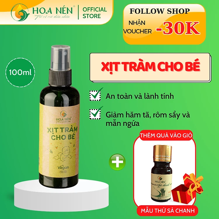 Xịt tràm cho bé 100ml - Hoa Nén - Khử mùi, ngăn muỗi và côn trùng đốt, gi.ảm h.ăm t.ã, r.ôm s.ảy, m.ẩn ng.ứa cho bé