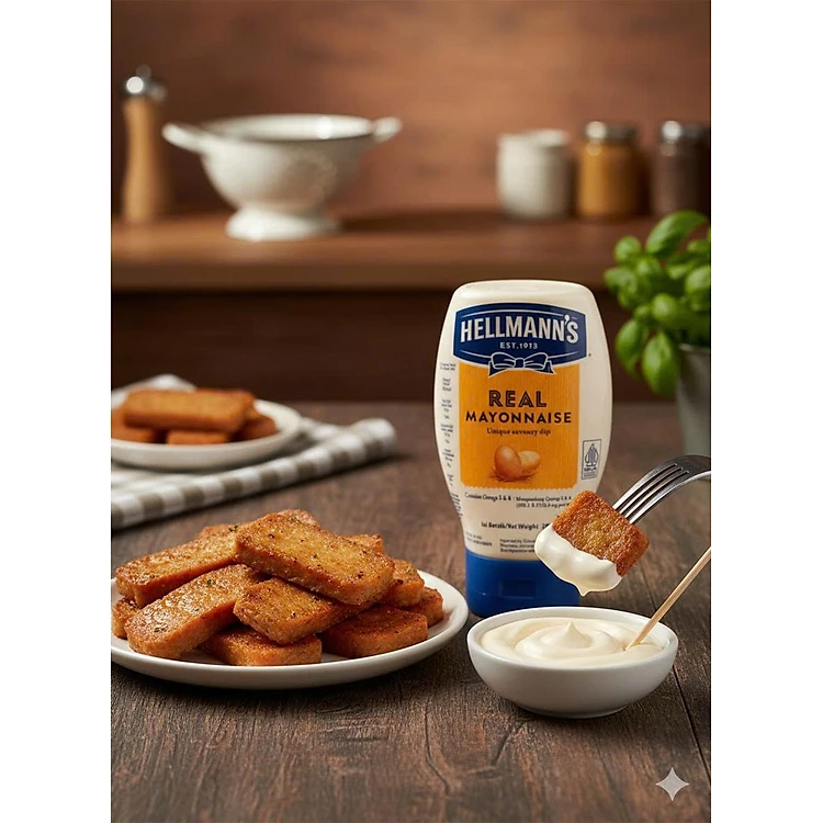 Thêm vị béo ngậy và thơm dịu cho món ăn với Xốt Mayonnaise Vị Nguyên Bản Hellmann’s 50ml là lựa chọn hoàn hảo cho salad, sandwich, burger hay món chiên giòn. Xốt được làm từ trứng và dầu thực vật chất lượng cao, mang đến vị béo ngậy, chua dịu tự nhiên, kết cấu kem mịn giúp món ăn thấm đều và đậm vị mà không ngấy. Hellmann’s đến từ thương hiệu Mỹ uy tín với hơn 100 năm kinh nghiệm về gia vị và dressing, sản xuất tại Thái Lan theo tiêu chuẩn quốc tế nghiêm ngặt, mang đến chất lượng chuẩn Âu trong từng bữa ăn Việt.