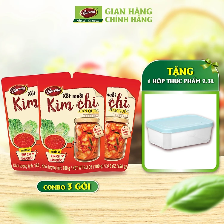 Xốt Muối Kim Chi Hàn Quốc Barona 180g, Combo 3 gói Tặng 1 Hộp nhựa 2.3L