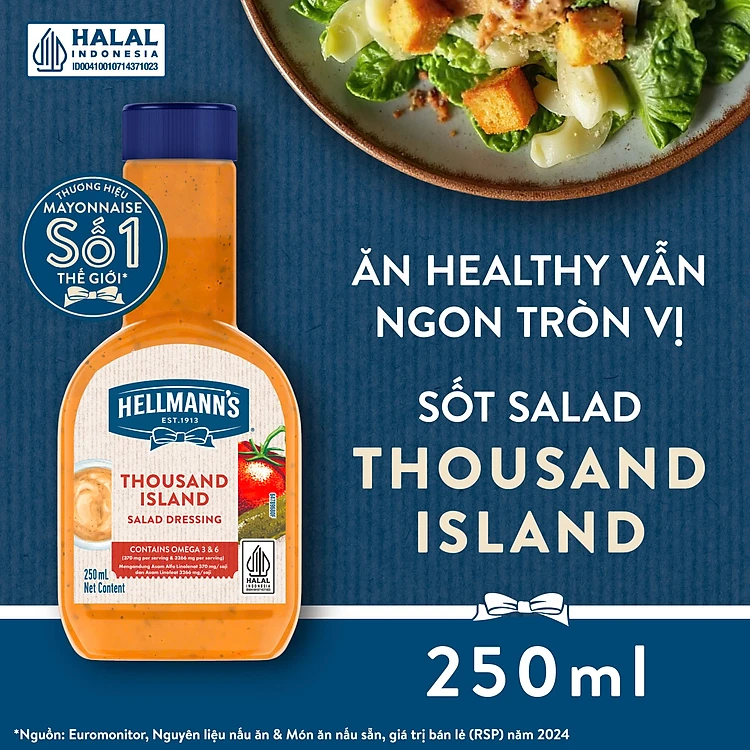 Xốt Salad Thousand Island Hellmann’s 250ml - Thương Hiệu Mỹ, SX Thái Lan | Hellmann’s Thousand Island Salad Dressing 250ml
