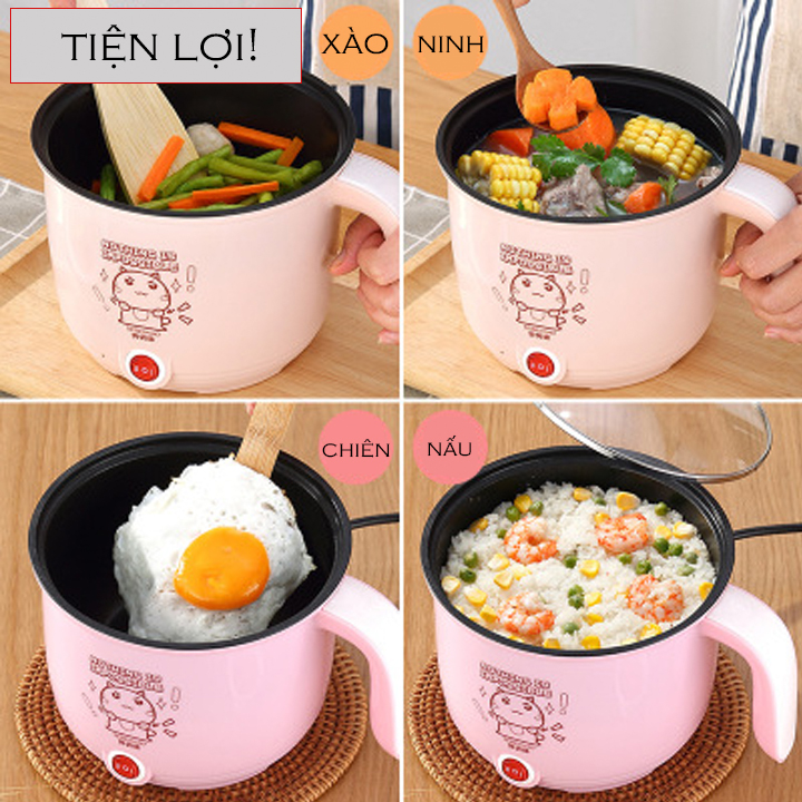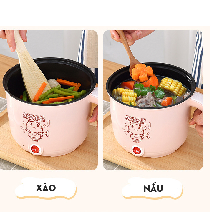 Nhờ có bề mặt chống dính mà sản phẩm có thể sử dụng cho nhiều mục đích nấu nướng khác nhau: Chiên, rán, xào hấp, nấu lẩu 1 người, nấu mì, nấu canh, Đặc biệt có xửng hấp nên có thể kết hợp nấu nướng nhiều món cùng lúc