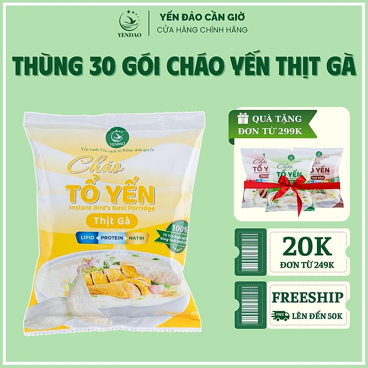 Yến Đảo - Thùng 30 Gói Cháo Yến Thịt Gà Ăn Liền Tiện Lợi Dinh Dưỡng Cho Gia Đình