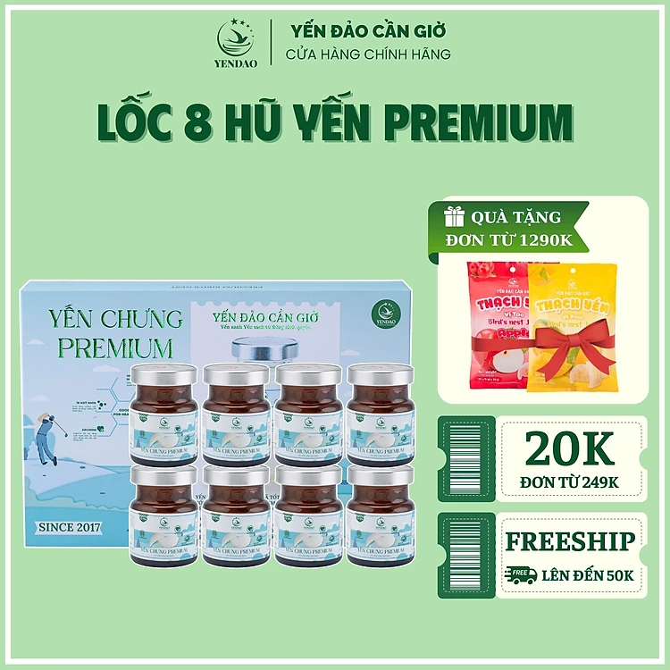 Yến Đảo - Tổ Yến Chưng Premium Dòng Cao Cấp Hàm Lượng Yến Cao Giàu Dinh Dưỡng Dạng Lốc 8 Hũ