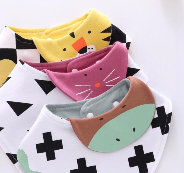 - Yếm ăn dặm hình tam giác SKIDS hình thú ngộ nghĩnh cho bé yêu được may bằng chất liệu 100% cotton thấm hút tốt, bông mềm bên trong giúp giữ ấm cổ, chống viêm họng trong mùa đông lạnh.