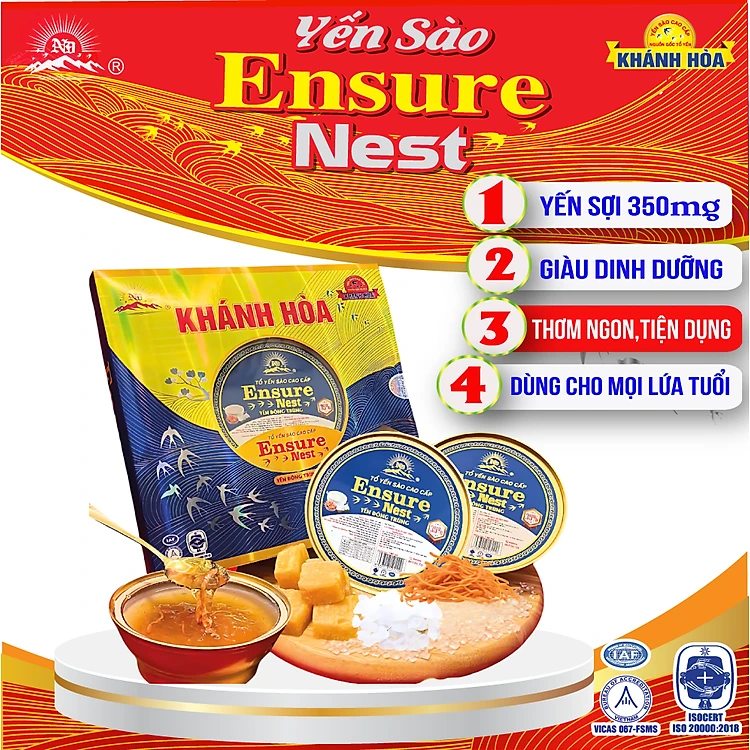 Yến Chén Cao Cấp Ensure Nest Chưng Sẵn Đông Trùng 140ml 39% yến - Nguồn gốc yến đảo Khánh Hoà