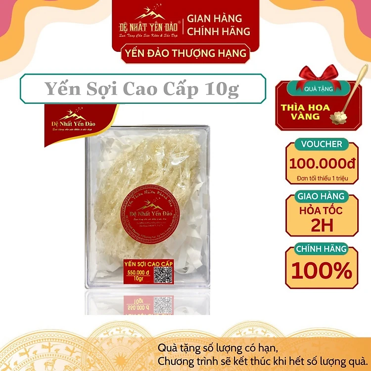 Yến Khánh Hòa - Yến Sợi Cao Cấp [Hộp 10g] - Đệ Nhất Yến Đảo - Tăng cường sức đề kháng - Bổ sung dinh dưỡng cho mẹ bầu - Đẹp da - Chống lão hóa - Bổ phổi - Hỗ trợ điều trị ung thư - Hỗ trợ sinh lý nam nử