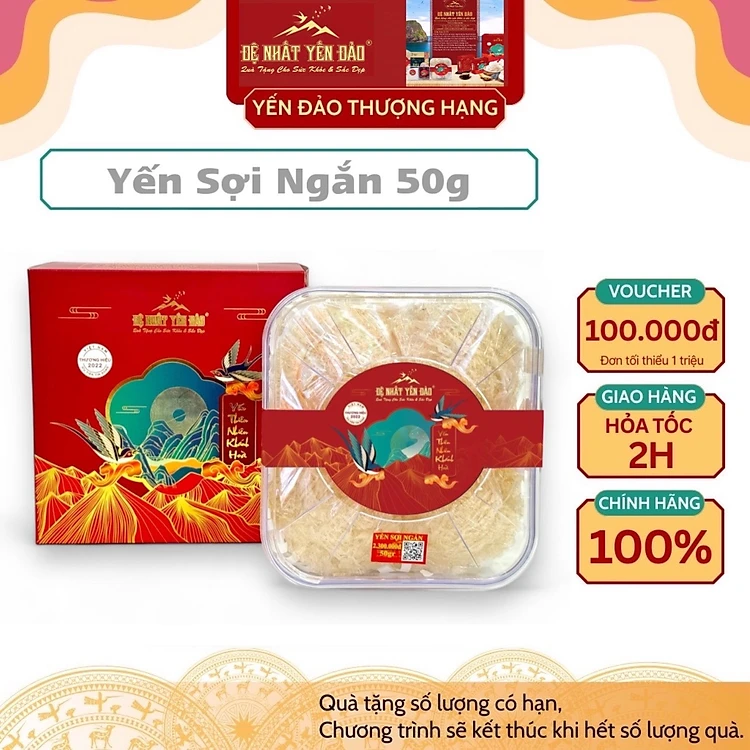 [TOP SALES] Yến Khánh Hòa - Yến Sợi Ngắn [Hộp 50g] - Đệ Nhất Yến Đảo - Bồi Bổ Sức Khỏe - Phục Hồi Chức Năng Phổi - Phụ Nử Sau Sinh - Đẹp Da - Chống Lão Hóa - Kéo Dài Thanh Xuân - Hỗ Trợ Điều Trị Ung Thư -Tăng Cường Sinh Lý -Trí Nhớ - Cải Thiện Giấc Ngủ