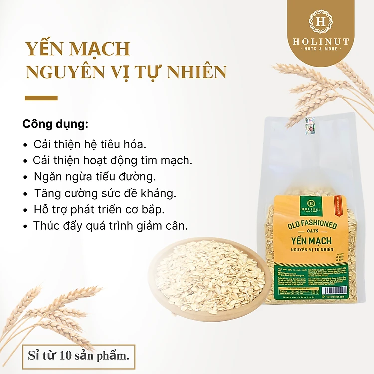 Yến mạch cán dẹt nguyên cám Úc đóng túi/ hũ 500gram thương hiệu Holinut