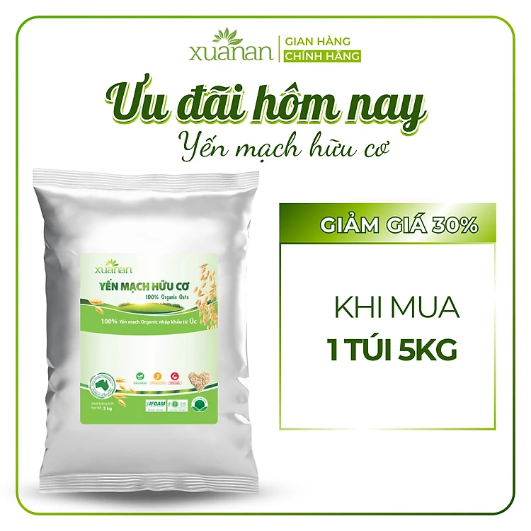 Yến Mạch Hữu Cơ Xuân An [ko đường] Túi 5Kg (Giảm 30%)