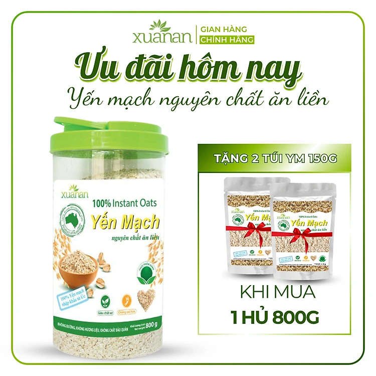 Yến Mạch Nguyên Chất Ăn Liền Xuân An [ko đường] Hộp 800G(Tặng kèm 2 túi Yến Mạch 150g)