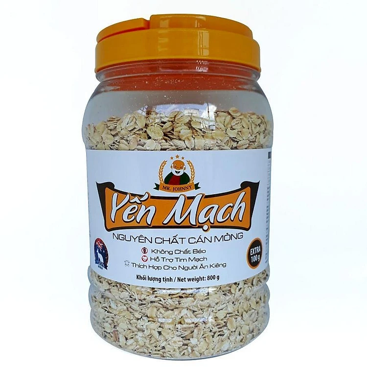 Yến mạch nguyên chất cán mỏng (Rolled oats) MR JOHNNY 800G - Tặng thêm 100G