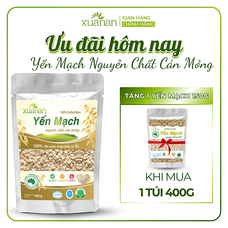 Yến Mạch Nguyên Chất Cán Mỏng Xuân An [ko đường]Túi 400G(Tặng 1 Túi Yến Mạch 150G)