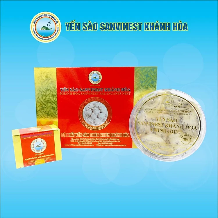 Quy cách: Hộp 50 gam + hộp 3 gam Yến sào Sanvinest Khánh Hòa chính hiệu nguyên tổ.