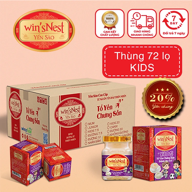 Thùng 72 lọ Yến Sào Win'snest Kids Tổ Yến Chưng Sẵn Dành Cho Trẻ 20% (70 Ml/ Lọ)