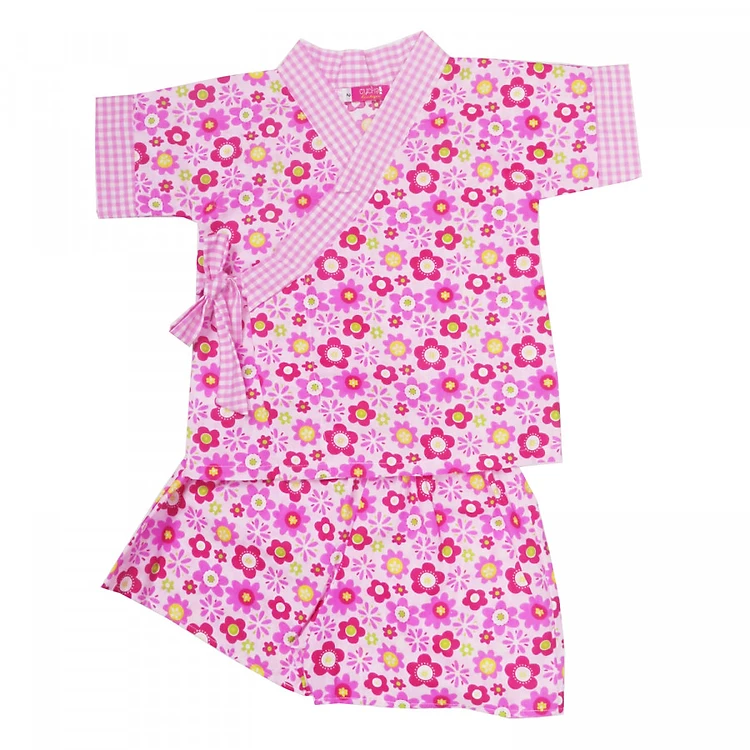 - Kiểu dáng yukata truyền thống của Nhật Bản, ngộ nghĩnh với thiết kế vạt áo đắp chéo, cột nơ bên hông, cho bé thêm dễ thương, đáng yêu khi mặc.
