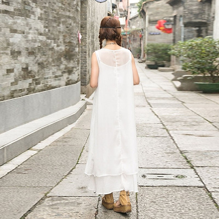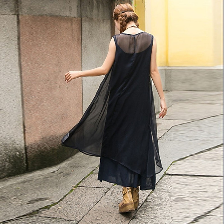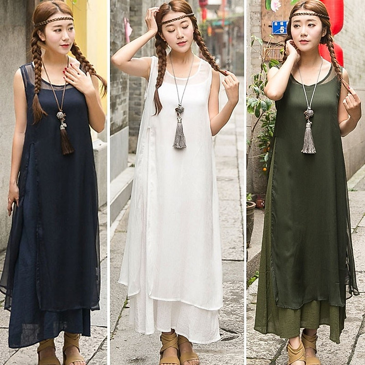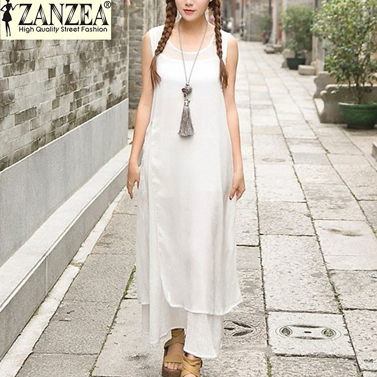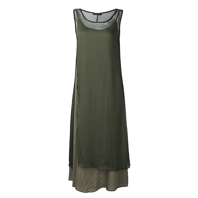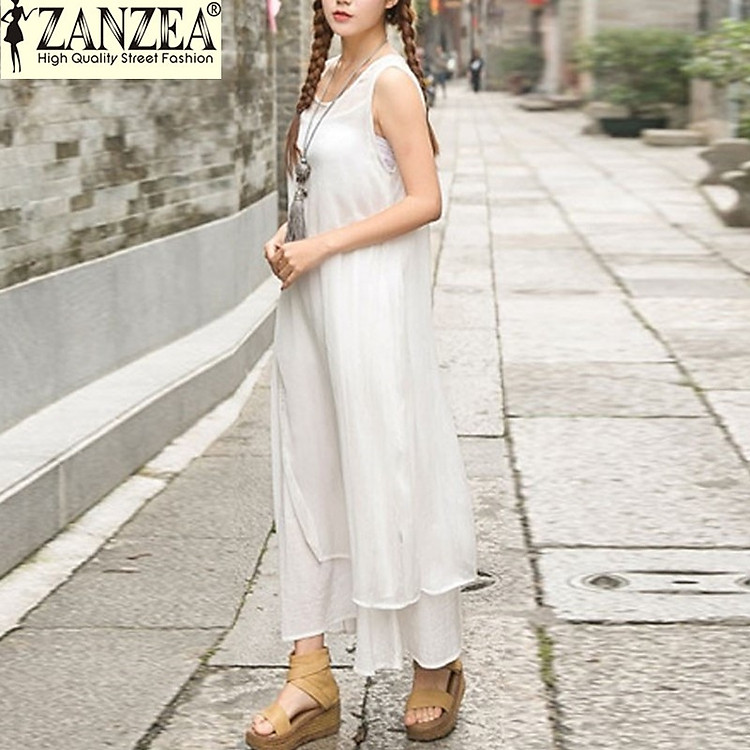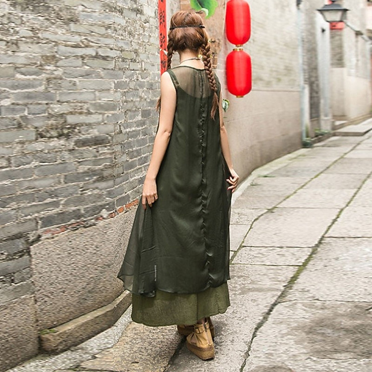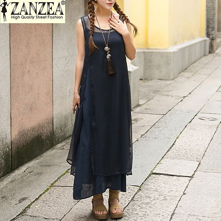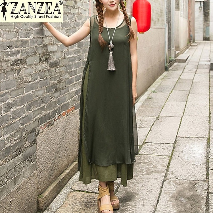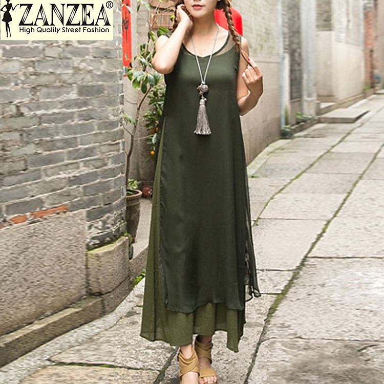 ZANZEA Fashion Summer Dress Women Long Maxi Dresses Casual Loose Rayon Silk Dress Sleeveless Vestidos Plus Size S-5XL (ArmyGreen)