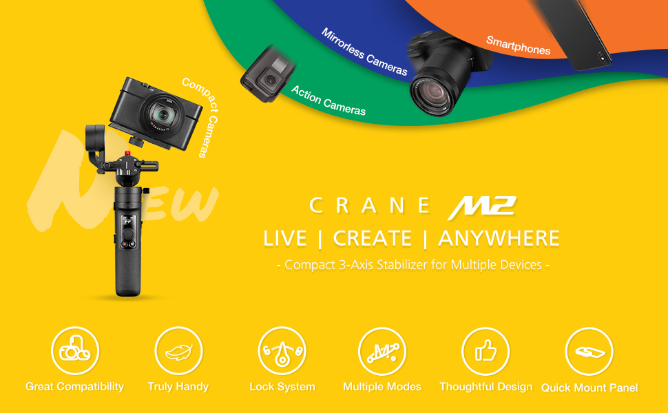 Với Zhiyun-Tech Crane M2, mọi người đều có thể trở thành một nhà làm phim thực thụ trong cuộc sống. ZHIYUN mang đến một thiết bị ổn định hình ảnh cầm tay mới được thiết kế tương thích nhiều thiết bị cho người dùng ở mọi cấp độ. Với hệ thống thiết lập nhanh dễ sử dụng hơn và thiết kế khóa thông minh, cũng như sáu chế độ hoạt động sáng tạo, Crane M2 dễ dàng đi bất cứ nơi nào bạn đến và cung cấp khả năng sáng tạo vô tận cho những thước phim hàng ngày của bạn.